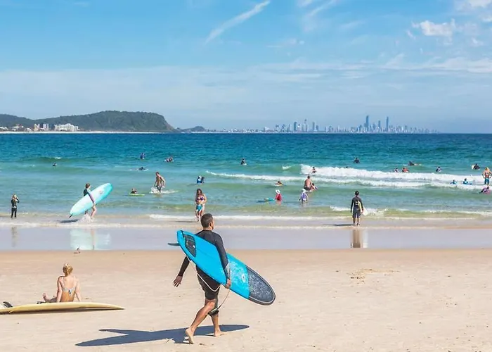 Situada a uma distância de 1.9 km das atrações familiares como o Santuário de Vida Selvagem Currumbin, esta pousada de Gold Coast se encontra no bairro Bang Rak em Gold Coast. A pousada Large Tugun Modern House Minutes To The Beach está situada a poucos passos de de Roughton Park enquanto a paragem St Monicas Catholic Church fica a apenas 350 metros de distância. Os entusiastas das compras irão desfrutar de uma localização a 0.7 km de Surf World Gold Coast.